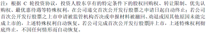 招股书第61页的注释显示,公司C轮投资协议中包含对赌条款。尽管公司声称“递交IPO申请后对赌条款自动终止”,但条款同时约定了“复活”机制:若上市申请被否决、主动撤回或因其他原因未获注册,股东的股份回购请求权将“立即复活”。更值得注意的是,前序各轮投资者的特殊权利安排已被C轮协议替代,这意味着绝大多数股东都享有“不上市即回购”的权利,而回购义务人为实控人左强或其指定第三方。
