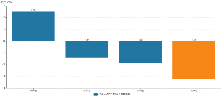 近三年财务数据显示,公司经营性现金流仅2022年为正,2023年、2024年分别净流出1.41亿元、1.86亿元,2025年上半年净流出额更是飙升至3.21亿元,短短一年半时间累计流出超6.48亿元。现金流持续失血的背后,是天量存货对资金的占用。