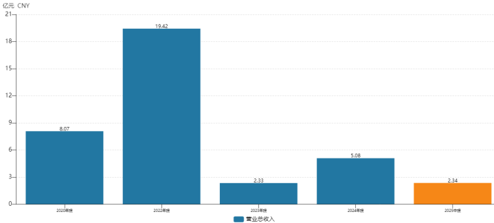 招股书数据显示,2022年至2025年上半年,公司营业收入分别为19.42亿元、2.33亿元、5.08亿元、2.34亿元,最高值与最低值相差近9倍;扣非后归母净利润更是从2022年的1.76亿元骤降至2023年的-6615万元,2024年小幅回正至3771万元后,2025年上半年再度转为-665万元,短短四年呈现标准的“W”型震荡。