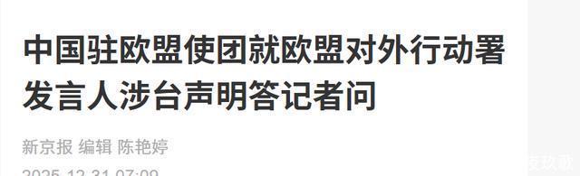 面对这些国家的抱团施压,中方没有手软,直接对29国发出严正警告。 这里的29国主要包括欧盟27个成员国,加上日本、澳大利亚等深度介入台海的国家,虽然官方没列出具体名单,但相关表态都有公开记录。 12月31日,中国驻欧盟使团发言人率先回应,明确指出欧方声明违背一个中国原则,干涉中国内政,敦促欧方立即纠正错误,不得向“台独”势力传递错误信号。